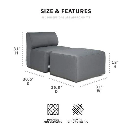 - Dimensions – Ottoman: 31″W x 30.5″D x 18″H | Weight: 14.8 lb