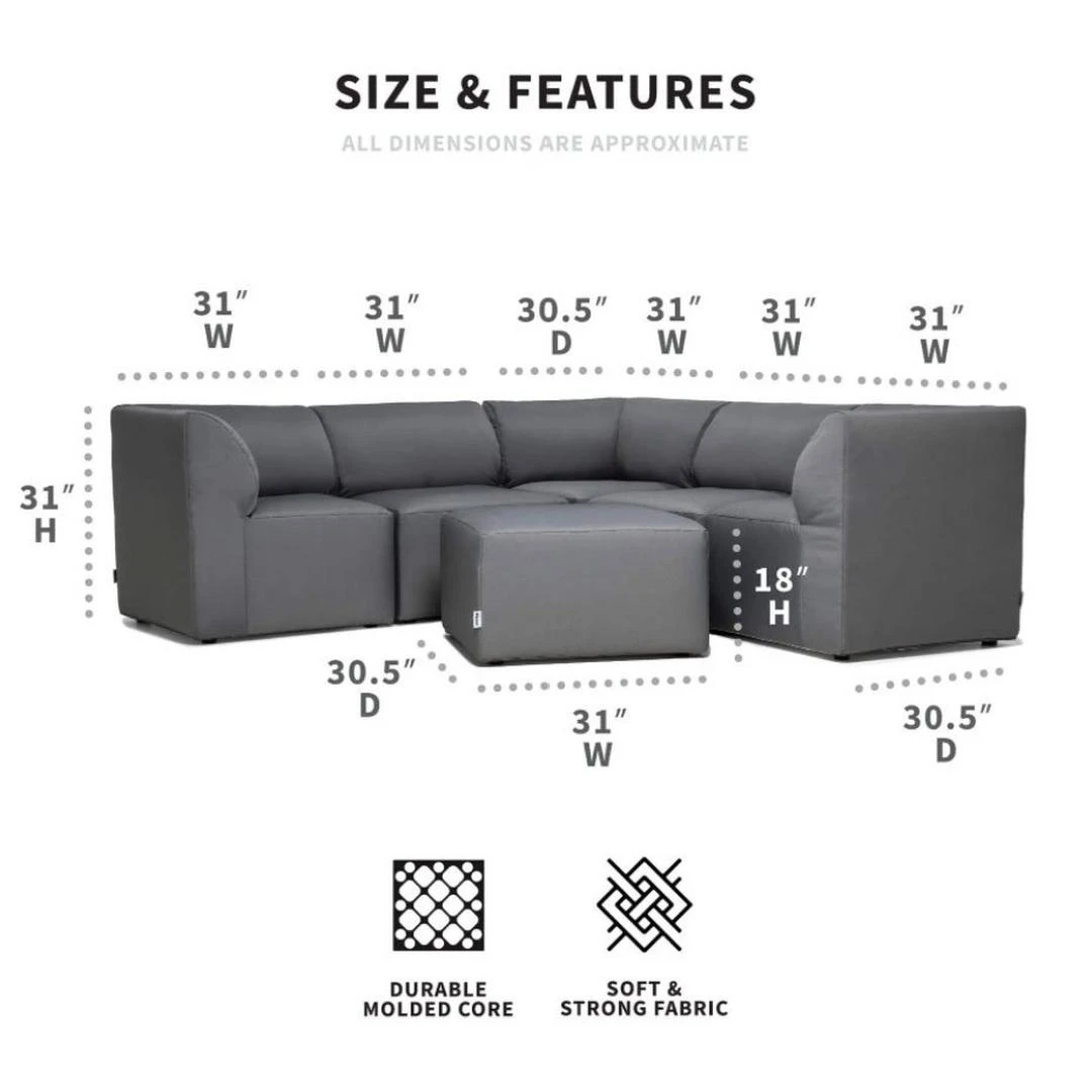 - Dimensions – Corner Chair: 31″W x 30.5″D x 31″H | Weight: 21.7 lb