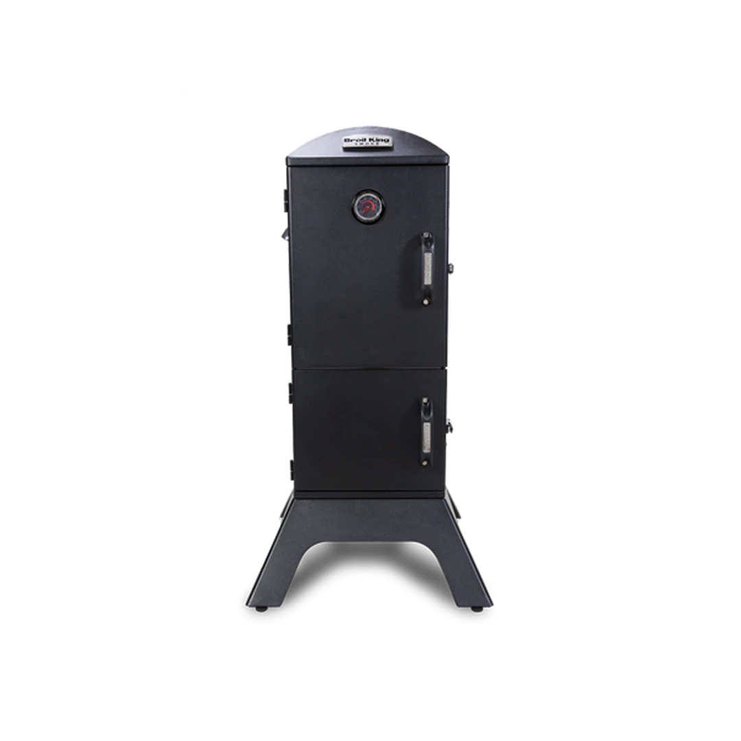 Smoke Charcoal features 770 sq. in. total cooking space, four adjustable stainless steel cooking grids, Sure-Lite electronic ignition system, Adjustable Roto-Draft cast aluminum damper system, and two rugged steel doors with gasket premium latch system.