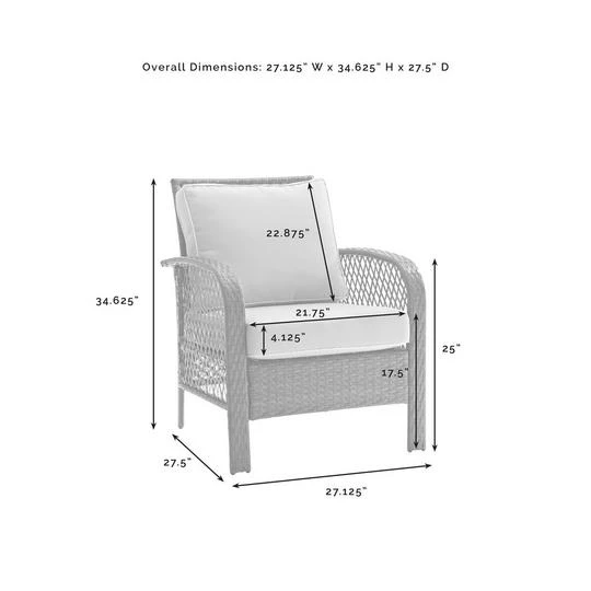 - Armchair measures 29″ W, 30.5″ D, and 32″ H