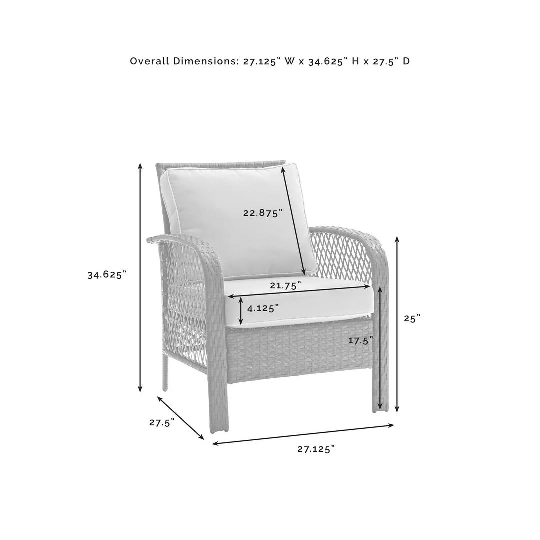 - Armchair Dimensions: 34.625″H x 27.13″W x 27.5″D