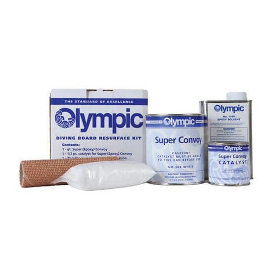 Use the Olympic Diving Board Resurface Kit to restore the slip resistant surface and re-paint weathered and worn diving boards.