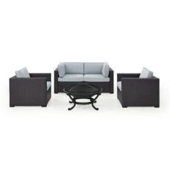 Crosley – Biscayne Mist 5-Piece Wicker Set With 2 Armchairs, 2 Corner Chairs And Fire Pit