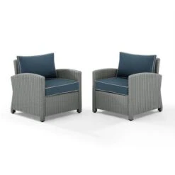Crosley – Bradenton 2-Piece Outdoor Wicker Armchair Set, Navy