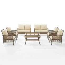 Crosley – Tribeca 8-Piece Outdoor Wicker Conversation Set, Brown